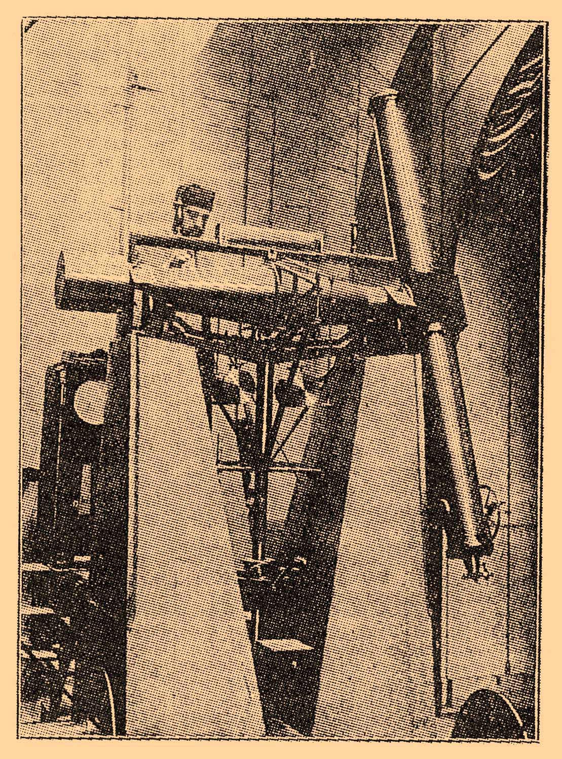 Небольшой круг, прикрепленный к той же оси, служит для установки инструмента на звезду. В фокальной плоскости объектива натянуты несколько (от 5 до 15) вертикальных нитей и одна или две горизонтальных. Наблюдения производятся или на слух и глаз, причем наблюдатель записывает сам прохождения через каждую нить, или же прохождения регистрируются с помощью хронографа. В предложенном недавно для этой же цели механиком Репсольдом микрометре, наблюдатель с помощью микрометрического винта заставляет нить неотступно следовать за звездой. Сетку неподвижных нитей заменяют контакты, расположенные на головке винта, замыкающие гальванический ток в хронографе. П. инструменты бывают переносные и постоянные. Переносные служат при геодезических полевых работах; обыкновенно они делаются с ломаной трубой, т. е. окуляр приделан к одному из концов оси вращения, а в центре инструмента расположена призма, отражающая падающие от объектива трубы лучи света по направлению, составляющему прямой угол с падающими. Постоянные П. инструменты в обсерваториях укрепляются на прочных каменных столбах. Если П. инструмент установлен в меридиане, то им можно находить время (поправку часов), зная прямое восхождение звезды, и обратно: зная поправку часов, определять прямые восхождения звезд. Невозможно вполне точно установить инструмент, поэтому наблюдения должны исправляться за следующие инструментальные ошибки: 1) Угол, который составляет ось вращения с горизонтальной плоскостью, называется наклонностью. Она определяется посредством уровня (см.), подвешиваемого своими концами на цапфы. 2) Угол, составляемый осью инструмента приведенного в горизонтальное положение с меридианом (или, что то же, осью вращения с линией O — W), называется азимутом инструмента. Для скорейшего определения его во время наблюдений, постоянные П. инструменты снабжены мирами — меридианными знаками, расположенными на значительном расстоянии от инструмента. Азимут же самих мир определяется из наблюдений полярных звезд. 3) Коллимационная ошибка — угол между оптической и геометрической осями трубы, иначе, уклонение от перпендикулярности оптической оси инструмента к оси вращения. Для ее определения необходимо переложить инструмент в его лагерях. Для возможного уменьшения инструментальных ошибок служат винты, передвигавшие лагери, в которых лежит ось (для исправления наклонности и азимута), а также рамку, на которой натянуты нити (для исправления коллимационной ошибки). П. инструмент, установленный в первом вертикали, т. е. вертикальной плоскости, проходящей через точки W и О, может служить для определения широты места.