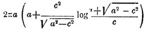Величина поверхности кругового кольца, если r есть радиус круга меридионального сечения, a R — радиус круга, образуемого центрами сечений, выражается формулою: 4π 2Rr.