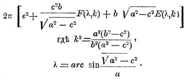 Величины полных поверхностей эллипсоидов. Эллипсоида вращения планетарного (полуось экваториальная а, полуось вращения с; c < a)