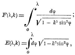 F(λ,k) и E(λ,k) суть эллиптические интегралы первого и второго вида: