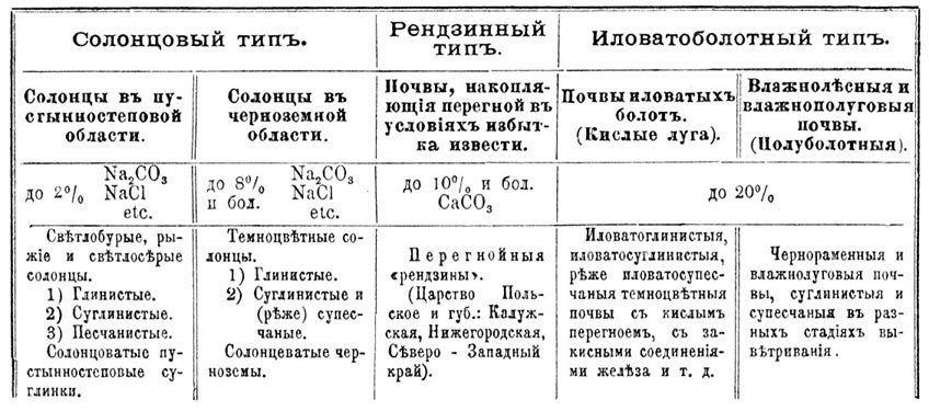 III) Химический состав. П. слагается из веществ органических и минеральных; последние крайне разнообразны, в зависимости от петрографического характера горных пород, вошедших в состав П. Чаще всего встречаются: глина, представляющая идеальный состав Al 2O3.2SiO2 + 2Н 2 О; в таком виде она встречается редко; чаще содержит окислы железа и цеолитные вещества. В чистом виде играет роль исключительно физического агента, особенно своей самой тонкой так наз. коллоидальной частью; химически мало подвижна. В П. ее содержится от долей процента (в песчаных) до 38%. От глины в химическом смысле следует отличать механическую глину, в состав которой входят тонкозернистый кварц, полевой шпат, целоиты и пр.; последней глины в П. всегда больше, чем химической. Цеолиты (водный кремнекислый глинозем, заключающий в себе щелочи или щелочные земли) примешаны обыкновенно к почвенной глине. Будучи химически легко подвижными (разлагаются слабой соляной кислотой и вступают в обмен с щелочными и щелочноземельными солями), они играют важную роль при оценке производительности П. Количество их колеблется от долей процента до 25 — 30%. Окислы кремния (кремнезем SiO 2) и железа всегда присутствуют в почве: первые в виде кварцевых зерен и гидрата кремнекислоты, а вторые в виде бурого железняка, реже — магнитного железняка и т. п., т. е. в виде полуторных окислов [Fе 2 О 3, Fе 2 (НО) 6 ] и закиси-окиси Fе 2 О 4. Изредка (в П. болотного происхождения) встречаются и закисные формы железа. Присутствием железа обусловливается, большею частью, буроватая окраска П. в естественном состоянии и красная — после прокаливания. Также обычны соли всевозможных кислот: угольной в форме, главным образом, углекислой извести, реже — магнезии и щелочей; серной — в виде железного купороса FeSO 4 и гипса (СаSО 4 + 2Н 2 О); фосфорной — также в виде солей железа и извести (Са 3 Р 2 О 8, Са 2 Н 2 Р 2 О 8, CaH4P2O8, FePO4, Fe3P2O8 и др.); хлористоводородной — чаще в форме хлористых щелочей (в солонцах); азотной и азотистой — в форме селитр и т. п. Кроме перечисленных соединений, в почвенном воздухе обыкновенно находятся, в ничтожном количестве, как результат деятельности микроорганизмов, следующие газообразные примеси: водород, аммиак, метан, сероводород и др. Распределение минеральных веществ в П. обыкновенно довольно равномерное; только в П. молодых можно подметить закономерное убывание или увеличение их по мере приближения к материнской породе. О количестве минеральных веществ и их распределении дает понятие следующий аналаз П. из Екатеринославской губернии (Костычев).