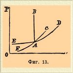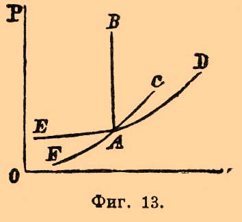 ЕА — кривая возгонки твердого белого фосфора, AC — кривая упругости насыщенного пара жидкого фосфора; пунктирное продолжение AC — упругость паров переохлажденного жидкого фосфора; другая пунктирная линия из А отвечает моновариантной системе: фосфор твердый + фосфор жидкий; кривая BD — кривая давления паров красного фосфора. Несмотря на неустойчивое равновесие, белый фосфор не переходит сам собой в красный. Как видно, во всех случаях, согласно требованию теории, во всех инверсионных точках имеются по три фазы. И наоборот, определение числа сосуществующих фаз позволяет решить, сколько независимых переменных принимают участие в равновесии; необходимо только, чтобы на системе не сказывалось влияние тяготения, капиллярных сил и т. д. (см. выше), а чтобы изучение ее велось при давлениях и температурах, свойственных самой системе, потому что наличность какого-нибудь определенного давления или определенной температуры, как было указано при обсуждении диаграммы для воды, понижает степень свободы системы, превращая дивариантную в моновариантную, а моновариантную в безвариантную, что влечет за собой нахождение ложных инверсионных точек.