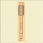 Банник состоит из деревянной цилиндрической колодки (1) со щеткой (2), насаженной на древко (3) при посредстве железной трубы (4), нагнанной одним концом на хвост колодки, другим — на конец древка; щетки в полевой артиллерии делают из щетины, в крепостной — из корней растений; для придания последним гибкости перед употреблением в дело мочат их в воде; колодки банников для облегчения делают пустотелыми; щетина и древесные волокна укрепляют пучками в отверстиях колодки. Банники бывают длинные — для банения всего канала, каморные — с укороченным древком для банения лишь каморы и со складным древком, употребляемые в орудиях, расположенных в казематах, вследствие недостатка места. Каморные банники употребляются в крепостной артиллерии для 8-дюймовых и больших калибров и в полевой; в первой — потому что затруднительно после каждого выстрела банить длинный канал, во второй — чтобы увеличить скорость стрельбы — банят только камору пушки; длинные банники оставлены лишь для производства стрельбы холостыми зарядами и мытья канала. В орудиях, стрелявших снарядами со свинцовыми оболочками, употреблялись кардовые банники для очистки канала от приставшего к его стенкам свннца (свинцевание канала); щетка их состоит из пучков тонкой, железной проволоки, воткнутой в кожу или гуттаперчу, которая прибивается гвоздями к колодке банника; колодка насаживается на древко (для орудия малых калибров) или через нее продевается толстая веревка, при помощи которой протягивают щетку через канал (для орудия 6-дюйм. и больших). Для предохранения от пыли на банники надевают кожаные чехлы или устанавливают их на сошках. Лоток и зарядная труба употребляются при банении и заряжании орудий большого калибра с цилиндро-призматическими валиками благодаря тому, что для облегчения последних у них отнят конец вправо от зарядного отверстия; лоток или зарядная труба вставляются через заклиновую часть канала в камору, причем первый своими вырезами, а вторая — лапками надеваются на соответствующие крючья, укрепленные на казенном срезе орудия. Снарядный кокор (фиг. 2) употребляется в крепостной артиллерии для подноски снарядов к орудиям средних и больших калибров;
