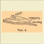 При последующих выстрелах, накатывая орудие на прежнее место и направляя линию визирования в ту же искусственную точку П., тем самым будем приводить ось канала орудия в первоначальное положение, при котором траектория снаряда проходит через цель. При ночной стрельбе искусственную точку П. обозначают особым фонарем, прикрепляемым к щитку, который служит для наводки днем; мушка освещается особым фонарем только сверху. Чтобы приводить после каждого выстрела ось канала в первоначальное положение в горизонтальной плоскости, т. е. восстанавливать горизонтальную наводку, при раздельном П. в полевой артиллерии отмечают колышками положение боевой оси лафета и провешивают направление на цель, в крепостной артиллерии — употребляют прицельный угломер (см.), прицельные, направляющие линейки (см.).