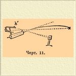 случается, например, когда для уменьшения потерь от неприятельского огня батарея ставится в складку местности и делается таким образом невидимой для противника; иногда при выезде батареи на позицию одно или несколько орудий оказываются в ложбине так, что наводчик не может наводить непосредственно по прицелу. Кроме наводки непосредственно по прицелу в цель и раздельного П., употребляются и другие способы. При стрельбе из осадных и крепостных орудий, располагаемых за высокими брустверами или в казематах, при стрельбе из береговых орудий, при ночной стрельбе П. производится в искусственную или вспомогательную точку (ею может быть или естественный предмет, или кол со щитком); если последняя выбрана впереди орудия, то П. в нее носит название прямой наводки, если же позади орудия, то в нее наводят от мушки к прицелу и П. называется обратной наводкой; способ обратной наводки применяется при стрельбе из орудий, помещенных в казематах, где искусственная точка П. за недостатком места перед орудием располагается позади него. Сущность (черт. 11) употребления искусственной точки П. состоит в том, что, приискав положение оси канала орудия, при котором снаряды попадают в цель и которому отвечает положение целика в точке h, отмечают его постановкой целика так, чтобы линия П. прошла через выбранную точку, отличную от цели; для этого, оставляя наведенное в цель орудие неподвижным, выдвигают прицел и отклоняют целик настолько, чтобы последний оказался на линии, проходящей через выбранную искусственную точку П. и мушку, чему отвечает точка h'.