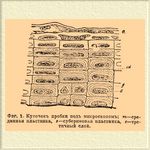 Фиг. 1. Кусочек пробки под микроскопом; m — срединная пластинка, s — субериновая пластинка, c — третичный слой.