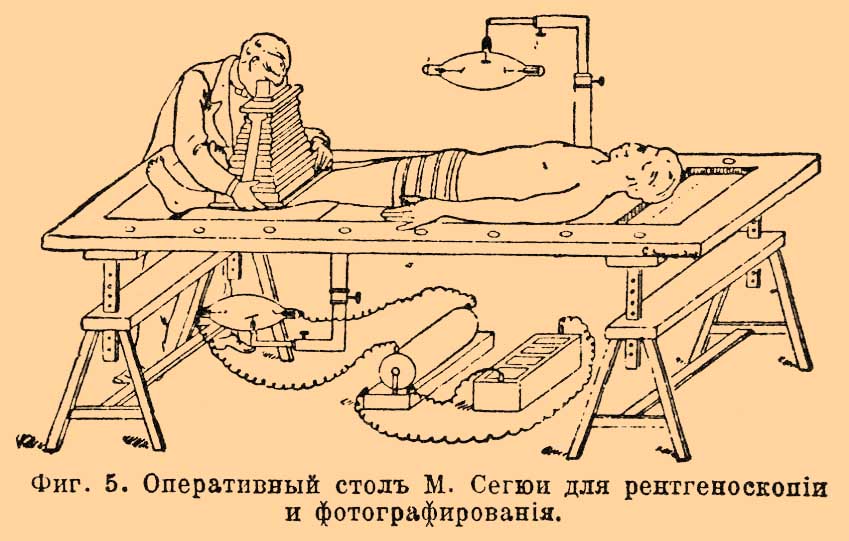 Фиг. 5. Оперативный стол М. Сегюи для рентгеноскопии и фотографирования.