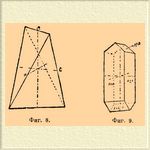 Кроме указанных форм, здесь находятся простые формы, состоящие только из двух параллельных плоскостей и называемые пинакоидами. Каждая из плоскостей пинакоидов пересекает только одну какую-нибудь координатную ось, направляясь параллельно двум другим. Смотря по оси, какая пересекается пинакоидом, его называют 1-м, 2-м и 3-м. Символы для пинакоидов — первого [100], второго [010] и третьего [001] [Пинакоиды называются также: макропинакоид, брахипинакоид, базопинакоид.]. Эти пинакоиды изображены на рисунках 2, 3 и 4. Как формы открытые — пинакоиды встречаются только в комбинациях.
