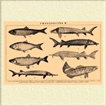1. Сельдь черноморская (Clupea pontica Eich.). 2. Сельдь каспийская (Clupea caspia Eich.). 3. Белорыбица (Lucio trutta leucichtys). 4. Стерлядь (Acipenser ruthenus). 5. Осетр русский (Acipenser Güldenstädtii Br.). 6. Белуга (Acipenser huso). 7. Севрюга (Acipenser stellatus). 8. Судак (Lucioperca sandla).