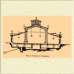 В рационально устроенных современных Р. наибольшего внимания заслуживают внутреннее разделение пространства для разных потребностей и более или менее сложные устройства для сохранения продуктов свежими и для достижения возможной чистоты и опрятности. Наибольшее пространство в Р., назначенных для продажи продуктов повседневного потребления, должно быть отведено под торговлю плодами и овощами, а затем — для мяса и рыбы. В видах удобства торговли, места для зеленной торговли разделяются на квадраты проходами, а для товара устанавливаются узкие столы или полки, в виде лестниц. Для мясной торговли требуются особые столы, крытые железом или мраморные (обыкновенно наклонные, для стока крови и других жидкостей), крючья, подвешенные к потолку, блоки и т. д.; рыбникам необходимы баки с водой и пр. В некоторых новейших Р. в Германии, как и в петербургском Сенном Р., зеленщикам отведены места, разделенные простенками, товары разложены на столах, а наверху по стенам устроены полки, где устанавливаются небольшие корзины и проч. Торговцы живой рыбой могут пользоваться проточной водой из водопровода. Пол на Р. должен быть повсюду ровный, по возможности на одном уровне с окружающими улицами; ступеньки внутри избегаются и заменяются наклонными площадками. Пол делается цементным или из асфальта. Для торговли мясом, дичью и рыбой желательно иметь подвальные помещения, искусственно прохлаждаемые. Главные проходы между столами и лотками должны быть не уже 3—5 м, а боковые проходы — от 1,5 до 2 м. Во Франции устраиваются постоянные лотки для зеленщиков, площадью в 2 кв. м, а для продажи мяса — площадью до 7 кв. м. В английских Р. для продажи зелени устанавливаются длинные столы, шириной от 60 до 75 стм, отдающиеся в найм на меру, мясо же продается в отдельных лавках, площадью от 10 до 50 кв. м. В парижском Центральном Р. (Halles centrales) каждая стойка для продажи мяса занимает от 5 до 9 кв. м, для фруктов или цветов — 4 кв. м, для зелени — 2 кв. м. В Ливерпуле боковые лавки занимают по 12 кв. м. Во Франкфурте-на-Майне места с открытыми лотками занимают площадь в 1,5 кв. м, отдельные лавки — от 6,6 до 7 и даже 8,5 кв. м. Р. для оптовой торговли представляют обыкновенно одно просторное помещение без столов и стоек, где товары лежат штабелями. Иногда пространство разделяется деревянными простенками на отделения, где располагаются товары разных владельцев. В непосредственной связи с Р. должны находится: а) помещение для администрации, служащих, сторожей и проч., б) бюро для полиции, в) лаборатория для микроскопического исследования, г) отхожие места, д) помещение для взвешивания купленных товаров, под наблюдением присяжного весовщика, в тех городах, где это принято. Для отбросов должны быть отведены особые места, откуда они периодически удаляются. Галерея должна иметь хорошие стоки, примыкающие к городской канализации (фиг. 3).