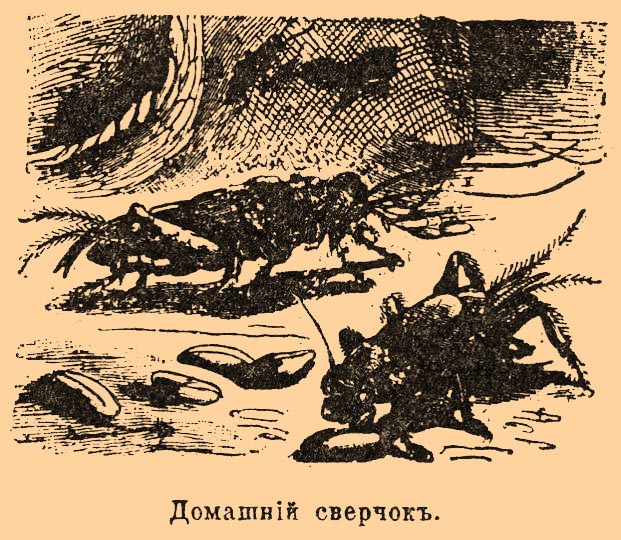 Домашний С. (Gryllus domesticus) желтоватого цвета, голова с 3 бурыми перевязками, крылья обыкновенно вполне развиты и простираются вдоль брюшка в виде длинных хвостов; достигает длины до 2 стм. Встречается повсюду в домах, особенно в теплых помещениях (кухнях, банях и т. п.) и питается пищевыми отбросами. Издает характерный звук (стрекотание), преимущественно ночью (см. Сверчковые).