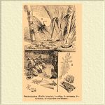 Продолговатые личинки, живущие в воде, снабжены 7 парами нитевидных жаберных трахей на 7 передних брюшных сегментах; окукление личинок происходит в воде, во мху, в щелях и т. п. В то время как личинки отличаются большей подвижностью, взрослые насекомые малоподвижны и летают медленно. Наиболее обыкновенный вид S. lutaria, черного цвета, на голове и груди желтые пятна, крылья в размахе до 3 стм, водится повсюду в Северной и Средней Европе и держится по берегам рек, озер и проч. Верблюдка, Rhaphidia — см. Вислокрылка. — Сем. Panorpidae. Голова вытянута вниз в виде клюва; нижние челюсти сросшиеся с нижней губой; усики длинные, щетинковидные; крылья узкие, с небольшим числом поперечных жилок, иногда отсутствуют; ноги длинные, лапки 5-членистые. Личинки с грудными (настоящими) и брюшными (ложными) ногами, живут в земле и окукляются там же без кокона. Взрослые насекомые хищны. Сюда относятся: Раnоrра (см. Панорпа). Bittacus, лапки с одним когтем, челюстные щупальца нитевидные, простые глазки есть. В. tipularius (длиною 2½ стм), красновато-бурого цвета, чрезвычайно похож по наружному виду на комара из семейства Tipulidae (благодаря длинному и узкому брюшку, тонким длинным ногам и узким крыльям) и представляет, таким образом, явление мимикрии (см.); летает медленно в сумерках; цепляясь передними ногами за ветки, они могут оставаться долгое время в таком положении и хватают задними ногами добычу, состоящую из мелких насекомых; водится в Средней и Южной Европе. Boreus, глазков нет, крылья рудиментарные или совершенно отсутствуют, самки с выдающимся яйцекладом. Boreus hiemalis, темно-зеленого цвета с металлическим отливом; ноги, усики, рудиментарные крылья и яйцеклад буровато-желтые; рудиментарные крылья у самок в виде чешуек, у самцов в виде когтевидных загнутых кверху придатков; задние ноги удлиненные и приспособлены для прыганья; длина 3—4 мм; водится в Северной и Средней Европе и попадается на снегу и на глетчерах от октября до марта. Подотряд Trichoptera, представители которого известны под различными наименованиями — волосистокрылые, ручейники, мошки, метлы, веснянки и друг., характеризуется следующими признаками: голова небольшая, поставленная вертикально; усики длинные, щетинковидные, основной членик их длинный и толстый; глазки обыкновенно в числе 3; ротовые части слабо развиты; верхние челюсти очень малы и мягки, а нижние челюсти срослись с нижней губой; крылья покрыты чешуйками или волосками; задние крылья складываются вдоль; во время покоя крылья лежат крышеобразно; поперечных жилок на крыльях мало или совсем нет. По внешнему виду многие представители Trichoptera чрезвычайно напоминают бабочек, в особенности некоторых Microlepidoptera. Самки откладывают яйца, заключенные в студенистую массу, небольшими кучками на различные подводные предметы или на растения, растущие близ воды. Личинки (носящие в некоторых местностях названия колодок, шитиков и друг.) живут в воде и строят себе чехлики из различных посторонних предметов; они снабжены 3 парами довольно длинных грудных ног, а на заднем конце тела имеют пару хитиновых крючков, с помощью которых они удерживаются в чехликах; ротовые части личинок устроены по типу грызущих; на брюшных сегментах сверху и снизу, а иногда и по бокам находятся трахейные жабры в виде тонких нитей, соединенных по 2 и по 3 вместе; выделением прядильных желез, открывающихся на н