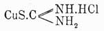 Для Т. в высшей степени характерна способность к самым разнообразным реакциям присоединения, обусловленная присутствием в ее частице атома серы. Она легко соединяется с галоидами, кислотами, некоторыми металлическими окисями, солями многих металлов и с целым рядом органических веществ. Соединения с хлором, бромом и йодом имеют состав (CSN 2H4)2X2 (Claus, Macgowan); из соединений с кислотами наиболее характерно CSN 2H4·HNO3. Сочетания Т. с различными солями свинца, кадмия, ртути, олова, висмута, серебра, таллия, меди, платины и палладия исследовали Рейнольдс, Клаус, Мали, Преториус-3ейдлер, Ратке, Курнаков и др. Состав всех этих двойных солей отвечает общей формуле nCSN 2H4·MXm, где M — металл, а X — кислотный остаток. В известных до настоящего времени солях коэффициент n изменяется в пределах от 3 до 4 (на 1 атом металла). При взаимодействии с солями окиси меди Т. реагирует сначала как восстановитель, причем образующаяся соль закиси вступает затем в сочетание с новым количеством Т. (Rathke). Высшее платиновое соединение имеет состав (CSN 2H4)4PtCl2 (Курнаков). Эти соли отличаются значительным постоянством в присутствии кислот и не разлагаются сероводородом. Вообще говоря, наиболее прочные сочетания Т. образует с солями металлов, которые осаждаются сернистым водородом из кислых растворов или, говоря другими словами, дают более стойкие, не разлагаемые кислотами сернистые соединения. С другой стороны, при замещении серы в Т. другими группами получаются вещества, в которых способность к соединению или ослаблена, или даже совсем уничтожена. Далее, нужно заметить, что Т. в соединениях с кислотами и солями является однокислотным основанием, между тем как содержит две амидогруппы. Наконец, изучение реакции галоидалкилов на Т. (см. ниже) показывает, что действие присоединяющихся веществ направляется прежде всего на серу. На основании всех этих соображений полагают, что сера Т. принимает непосредственное участие в акте сочетания, причем образуются производные изо-Т., строение которых, напр. для солей меди, будет такое: