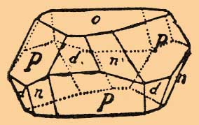 (ильменит) — минерал, кристаллы которого принадлежат к ромбоэдрическому классу тригональной системы. Отношение осей: a : с = 1: 1,38458. Встречается в прекрасно образованных, иногда очень значительных кристаллах, а также в сплошных массах или в виде песка. Кристаллы имеют таблицеобразный или ромбоэдрический габитус (см. фигуру, где R = {100}, o = {111}, d = {111} и n = {311}) и встречаются или вросшими, или же наросшими, образующими друзы и сростки в виде розеток. Довольно совершенная спайность по (111) и (100). Излом раковистый до неровного. Твердость 5—6. Удельн. вес 4,56—5,21. Цвет железо-черный, иногда бурый или стально-серый. Блеск полуметаллический.