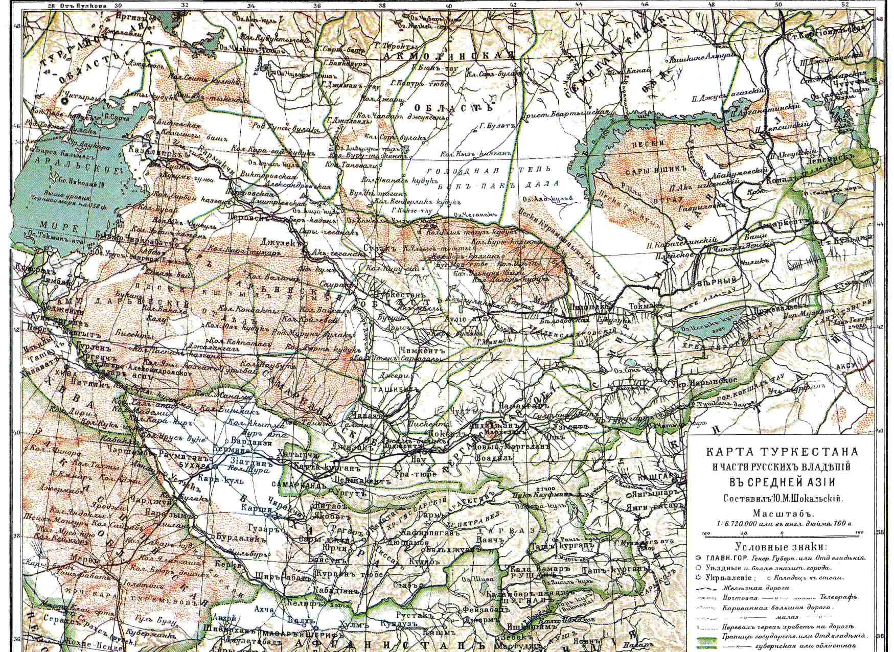КАРТА ТУРКЕСТАНА в части русских владений в Средней Азии.