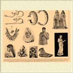23а, 23б. Бронзовые змеевидные фибулы из Крайны (Гальштатский период). 24, 25. Бронзовые браслеты в виде овальных открытых обручей с концевыми шипами, эпохи свайных построек. 36. У. современного индейца племени каройа (палочки в ушах и нижней губе).ж 27. Ожерелье из человеческих пальцев у шаманов индейского племени апалахов. 28. У. папуасца (из Н. Померании) с ожерельем из нанизанных на нитки пластинок раковин. 29. У. на Соломоновых о-вах; ожерелье и браслет вокруг икр из собачьих зубов; на локте обруч из слоновой кости; на груди амулет; в носовой перегородке воткнута палочка. 30. Праздничные У. на Соломоновых о-вах; парик, У. из дорогих раковин (налобник), жемчуга, перьев и пр. 31. Индуски с У. в крыльях носа и нижней губе и с обручными У. (Ringschmuck) на руках, ногах, пальцах рук и ног. 32. Серебряные У. на ногах томилки (Передняя Индия). 33. У. знатной сингалезки (Цейлон). 34. Древняя гречанка; изящество при полном отсутствии специальных У.