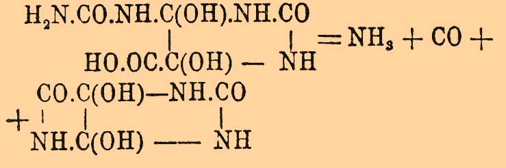 которая дальше в тех же условиях распадается, гидратируясь на аммиак, углекислоту и глиоксилмочевину (Медикус):