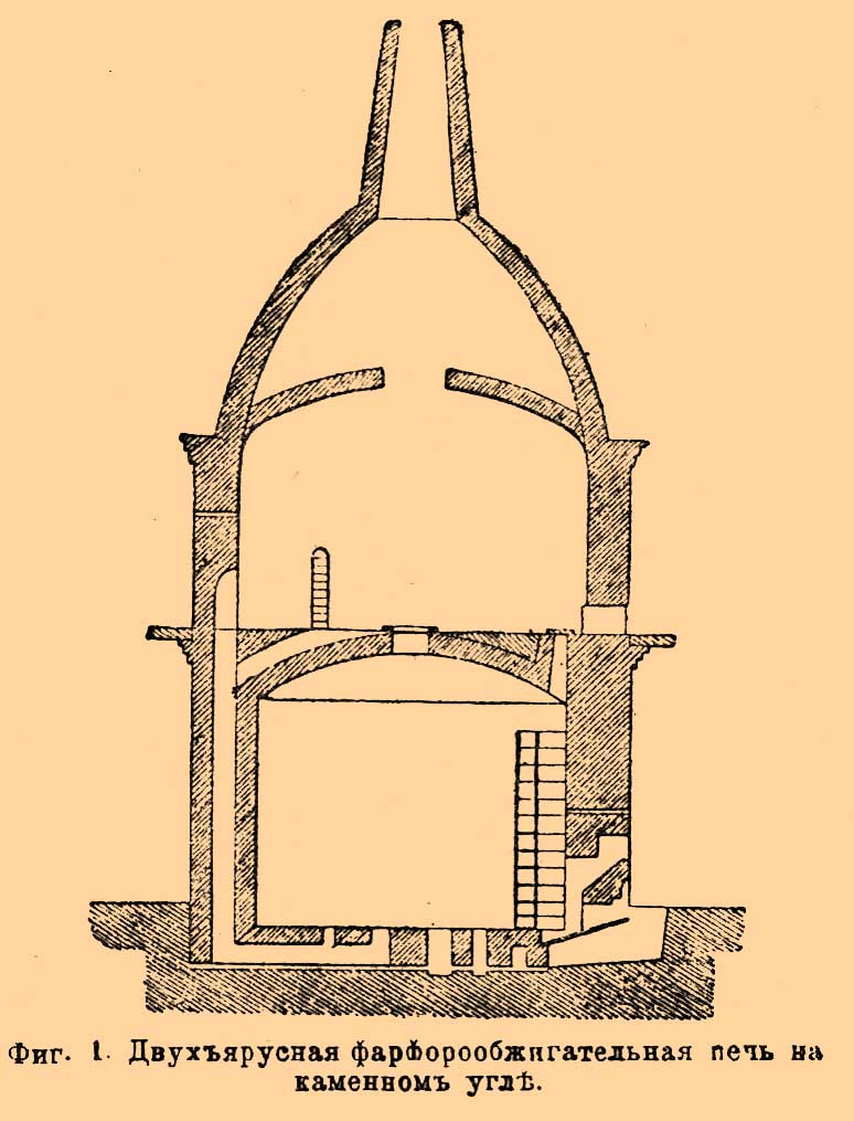 Фиг. 1. Двухъярусная фарфорообжигательная печь на каменном угле.