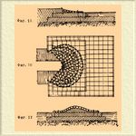 Для выделки прутяных канатов наиболее пригодны те породы ивы, которые растут отдельными длинными ветвями (напр. красная ива, краснолозник). Для удержания камня, назначенного для огрузки сооружений и фашинных покрывал, для ограждения сухой каменной кладки на откосах земляных валов и насыпей в предупреждение размыва их течением, а также для заграждения мелких проранов в боковых, закрытых выправительными сооружениями рукавах рек с целью способствовать окончательному занесению их песком и илом устраиваются фашинные плетни (фиг. 3).