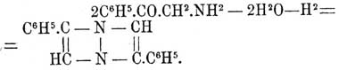 При восстановлении изонитрозоацетофенона C 6H5 —СО—СН=N—OH в кислом растворе фенациламин получается и легко может быть изолирован в виде солей, которые отличаются значительною прочностью; из них при действии растворов едкого натра или аммиака осаждается и самое основание в свободном состоянии; однако при высушивании оно превращается в продукты уплотнения C 16H14N2O (= 2C8H9NO — H2 O — Н 2) и C 16H12N2 (дифенилалдин). При действии на хлористоводородную соль фенациламина азотистой кислоты образуется диазоацетофенон С 6 Н 5 —СО—СН=N 2, аналогичного строения с диазоуксусным эфиром, представляющий блестящие игольчатые кристаллы с темп. плавл. 50° и своеобразным, не лишенным приятности запахом; при быстром нагревании он взрывает, с растворами брома или йода в хлороформе выделяет азот и с бромистым водородом превращается обратно в бромистый Ф.