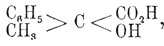 Приведенные формулы Ф. кислот указывают, что каждый из изомеров имеет в своем составе один асимметрический атом углерода (см. Стереоизомерия) и потому можно ожидать для каждой из Ф. кислот трех модификаций, из которых одна должна вращать поляризованный свет вправо, другая влево и третья — эквимолекулярная смесь первых двух — должна быть инактивна. До сих пор, однако, эти три стереоизомерных модификации известны только для α -фенилгидракриловой, или троповой, кислоты.