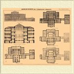 ФИЗИЧЕСКИЙ ИНСТИТУТ при С.-Петербургском университете. 1. Главный фасад. 2. Вертикальный разрез по линии EF. 3. План 1-го этажа. 4. План 2-го этажа. 5. План 3-го этажа. 6. План 4-го этажа.