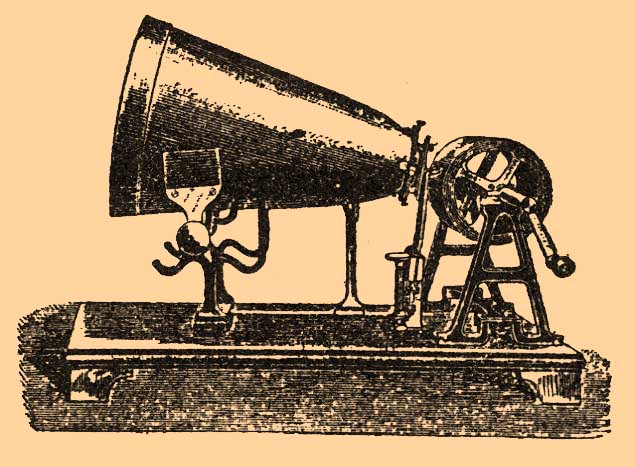 Главнейшую часть этого прибора, изобретенного Скоттом (Е. L. Scott, 1859) и усовершенствованного Кёнигом, составляет упругая перепонка, натянутая помощью особых винтов на небольшое отверстие металлического параболоида; звуковые волны концентрируются параболическим раструбом и приводят в колебания перепонку, находящуюся в фокусе параболоида; при этом легкий штифтик, прикрепленный к перепонке, записывает колебания на покрытой копотью бумаге, навернутой на вращающийся цилиндр с винтообразной нарезкой на его оси, так что при этом имеется и поступательное движение цилиндра вдоль оси (в первоначальном устройстве Скотта вместо параболоида был гипсовый эллипсоид, в одном из фокусов которого помещалось звучащее тело, а в другом фокусе находилась перепонка). Ф. представляет в грубом виде модель уха; раструб его соответствует ушной раковине, а упругая перепонка — барабанной перепонке уха. В случае простого тона на бумаге получается простая волнообразная кривая линия; в случае сложных звуков, когда, напр., основной тон сопровождается своими высшими гармоническими тонами (обертонами) или когда перед раструбом помещаются зараз несколько звуковых источников, кривые на цилиндре получаются более или менее сложные, при помощи которых, однако, можно судить о характеристических особенностях изучаемых звуков.