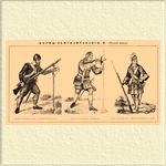 1. Пеший жилец XVI—XVII столетий. 2. Рында XVI—XVII столетий. 3. Стрелец (рядовой) и стрелецкий офицер (начало XVII столетия).