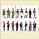 1. Офицер пехотных полков (1732—1742). 2. Офицер гусарских полков (1776—1782). 3. Гренадер мушкетерского полка (1797—1801). 4. Офицер егерских полков (1796—1801). 5. Унтер-офицер мушкетерских полков (1802—1803). 6. Рядовой кирасирских полков (1813—1814). 7. Матрос гвардейского экипажа (1856). 8. Рядовой л.-гв. Преображенского полка (1826—1856). — Эпоха императора Александра II: 9. Трубач л.-гв. драгунского полка. 10. Обер-офицер л.-гв. конно-гренадерского полка. 11. Обер-офицер л.-гв. гусарского Е. В. полка. 12. Обер-офицер пехотных армейских полков. 13. Обер-офицер армеских драгунских полков. 14. Обер-офицер армейских униатских полков. 15. Подхорунжий л.-гв. казачьего Е. В. полка. 16. Рядовой армейских пехотных полков времени императора Александра III и настоящего в парадной форме с полным походным снаряжением.