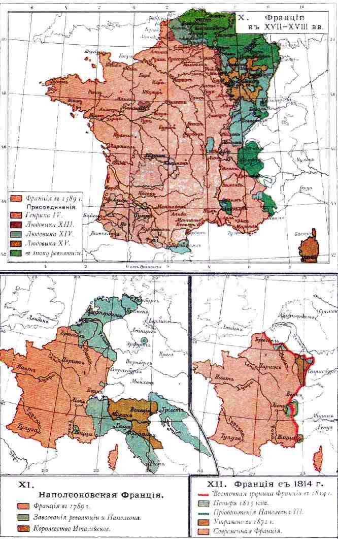 По определению Неккера Присоединены Савойя и Ницца. Потеря Эльзаса и Лотарингии. Увеличение площади лишь от более точного измерения ее по картам. Результат предварительный, данные переписи 1901 г. еще не обработаны. |
