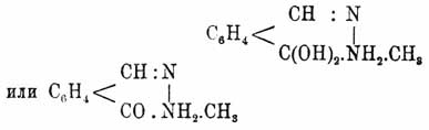 и, следовательно, при объяснении хода этих реакций появляется затруднение только в случае образования n- метилфталазона, который, без сомнения, получается путем перегруппировок атомов и, вероятно, присоединения элементов воды к окиси аммонийного типа С 8 Н 6N2(OH).CH3, и возможно, что при этом в виде промежуточного продукта образуется соединение: