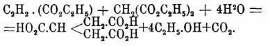 (Н 5C2)О 2 С.CH 2.ССl(CO 2.С 2H5)2 + 3Н 2 О = С 4 Н 4 О 4 + CO2 + HCl + 3C2H5(OH),