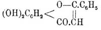 в котором один из гидроксилов находится в ортоположении к карбоксильной группе, вытекает из следующего. Пиккар нашел, что при обработке кипящим концентрированным раствором едкого кали X. нацело распадается на ацетофенон C 6H5CO—CH3, уксусную кисл. СН 3 СО 2 Н, бензойную к. С 6 Н 5 СО 2 Н и флороглюцин C 6H3(OH)3, т. е. разложениe его, как на это указал в последнее время Костанецкий, совершенно аналогично разложению флавона (и его производных), дающего при действии едких щелочей те же продукты, но только вместо флороглюцина — фенол. Далее Костанецкий показал, что хотя X. способен давать только моноалкильное производное (Пиккар), но с уксусным ангидридом он образует диацето-Х. Этот факт сразу пролил свет на строение X., так как до сих пор известны только производные кумарина, ксантона и флавона, в которых гидроксил, стоящий в ортоположении к группе СО, легко ацетилируется и совершенно неспособен замещать свой водород алкильными радикалами. Возможность рассматривать X. как метадиокси-β-фенилкумарин, с формулой которого приведенные факты также не находятся в противоречии, Костанецкий устранил тем, что приготовил это последнее вещество синтетически и показал, что его свойства сильно отличаются от свойств X. Наконец, недавно Костанецкий подтвердил указанное строение X. синтезом его путем конденсации (СН 3 О) 3 С 6 Н 2 —СО—СН 3 с С 2 Н 5 О—СО—С 6 Н 5 и последующего отщепления метильных групп с замыканием кольца при действии HJ.