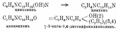 При окислении апоцинхена получается γ - ο - оксифенилхинолин С 9 Н 6 N(С 6H4.ОН), а потому приведенное строение апоцинхена должно считаться очень вероятным. Эти исследования указывают на возможность синтеза в недалеком будущем и самого цинхонина, и родственного с ним алкалоида хинина.