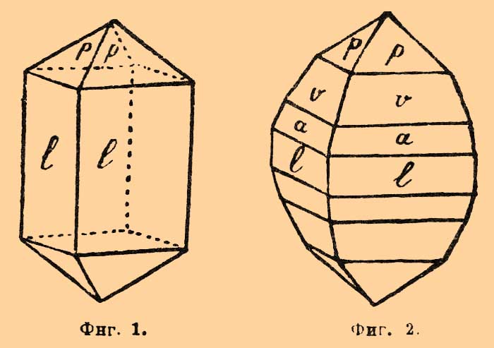 — минерал тетрагональной системы. Очень часто встречается в прекрасно образованных кристаллах, причем наблюдается два типа кристаллов: призматический: (фиг. 1) и пирамидальный (фиг. 2).