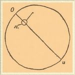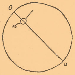 Фиг. I. Схема яйца амфибии, выведенного из нормального положения. o — верхний полюс, u — нижний; линия, соединяющая их, — ось яйца, n — ядро; стрелка указывает направление движения ядра при перемещении его.