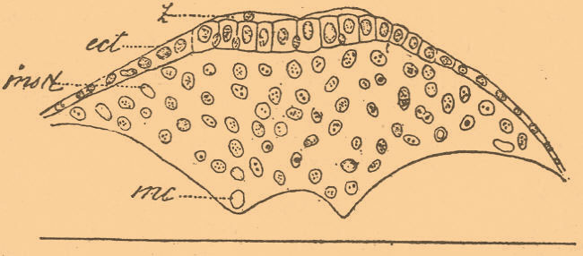 Так, у всех моллюсков на спине эктодерма образует, так называемую, раковинную железу. У головоногих процесс этот совершается путем обычной инвагинации (фиг. 4).