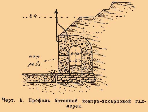 Черт. 4. Профиль бетонной контрэскарповой галереи.