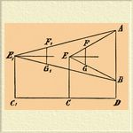 При измерении посредством якобштаба, например, высоты предмета, поступали следующим образом. Вставив меньший стержень в одно из отверстий и визируя измеряемый предмет с одного из концов большого стержня, отходили от предмета или приближались к нему до тех пор, пока его верхний и нижний концы не представлялись наблюдателю совпавшими с соответствующими концами меньшего стержня. Затем отмечали положение, занимаемое при этом наблюдателем на местности, и передвинув меньший стержень на одно деление в направлении, обратном тому, по которому передвигались первоначально в отношении измеряемого предмета, повторяли все прежние операции. Расстояние между первым положением наблюдателя и вторым представляло высоту измеряемого предмета. Действительно, пусть высота измеряемого предмета AB есть х; а длина меньшего стержня; С — первое положение наблюдателя, когда меньший стержень находился на n -ом делении большего; С 1 — второе положение наблюдателя, когда меньший стержень находился на n + 1-ом делении большего; b — расстояние между обоими положениями; наконец у — расстояние CD первого положения наблюдателя от предмета.
