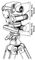 Перископическая артиллерийская буссоль (ПАБ): 1 — вертикальная ось-шестерня, вместе с ориентир-буссолью и установочным червяком составляющая нижнюю часть буссоли, которая после ориентирования во время работы остаётся неподвижной; 2 — ориентир-буссоль, предназначенная для ориентирования перископической буссоли по магнитной стрелке; 3 — установочный червяк, позволяющий вращать буссоль вокруг вертикальной оси; 4 — отсчётный червяк, при вращении которого верхняя часть буссоли медленно поворачивается вокруг вертикальной оси, показывая деления на буссольном барабане; 5 — монокуляр — зрительная труба, дающая прямое изображение.