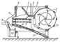 Схема устройства веялки: 1 — вентилятор; 2 — засыпной ковш; 3 — заслонка: 4 — регулятор наклона решёт; 5 — колеблющееся дно ковша; 6, 7 и 8 — качающиеся проволочные решёта; 9 — передвижной щиток; 10 — жёлоб для крупных примесей; 11 — неподвижное решето.