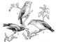 Гавайские цветочницы: 1 — Chloridops Kona; 2 — Vestiaria coccinea; 3 — Chlorodrepanis virens.