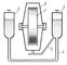 В Г. с ртутными сосудами (рис. 2) ротор 1 и гирокамера 2 отбалансированы так, что их общий центр тяжести совмещен с точкой подвеса. С гирокамерой связана система сообщающихся сосудов 3, частично заполненных ртутью. К правому сосуду прикреплена т. н. лапа 5, связывающая сосуды с гирокамерой. При отклонении оси гироскопа от плоскости горизонта избыток ртути в одном из сосудов обусловливает приложение к гироскопу момента силы тяжести, аналогичного соответствующему моменту в Г. с маятником.