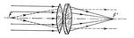 Параллельный пучок лучей, падающих на систему, собирается в заднем главном фокусе F'; лучи, идущие из переднего фокуса F, выходят из системы параллельным пучком.