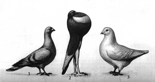 Голуби домашние: 1 — кинг; 2 — дутыш; 3 — мясной.