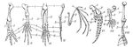 Гомология передних конечностей у наземных позвоночных. Скелет конечности: I — саламандры; II — морской черепахи; III — крокодила; IV — птицы; V — летучей мыши; VI — кита; VII — крота; VIII — обезьяны гориллы (1 — плечевая кость, 2 — лучевая кость, 3 — локтевая кость, 4 — кости запястья, 5 — пястные кости, 6 — фаланги пальцев).
