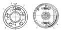 Рис. 3. Самоуправляемые муфты: а — свободного хода; б — центробежная; 1 — ведущая звёздочка; 2 — ролики; 3 — ведомая обойма; 4 — корпус; 5 — фрикционная обкладка.