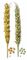 Твёрдая головня пшеницы: слева — здоровый колос и зёрна; справа — колос и зёрна, пораженные твёрдой головнёй.