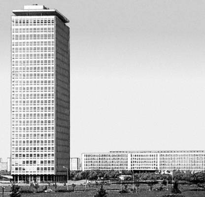 Белград. Здание ЦК Союза коммунистов Югославии (слева) и здание Союзного исполнительного веча в Новом Белграде.