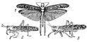 Пустынная саранча: 1 — стадная с расправленными крыльями; 2 — стадная сидящая; 3 — одиночная.